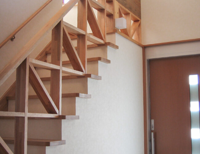 広い玄関は吹き抜けとして明るく開放感があり、大容量の収納と趣味の部屋を設け、 のびのび暮らせて、かつ年代に応じてさまざまな生活スタイルに合う設計にしました。