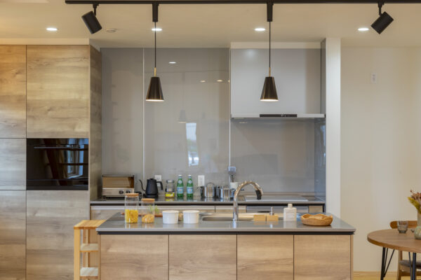 壁面にはオーブンを埋め込み、日々の料理をより楽しめるように。収納や設備の配置も使い勝手を重視し、食事の時間が心地よく流れる空間に仕上げました。