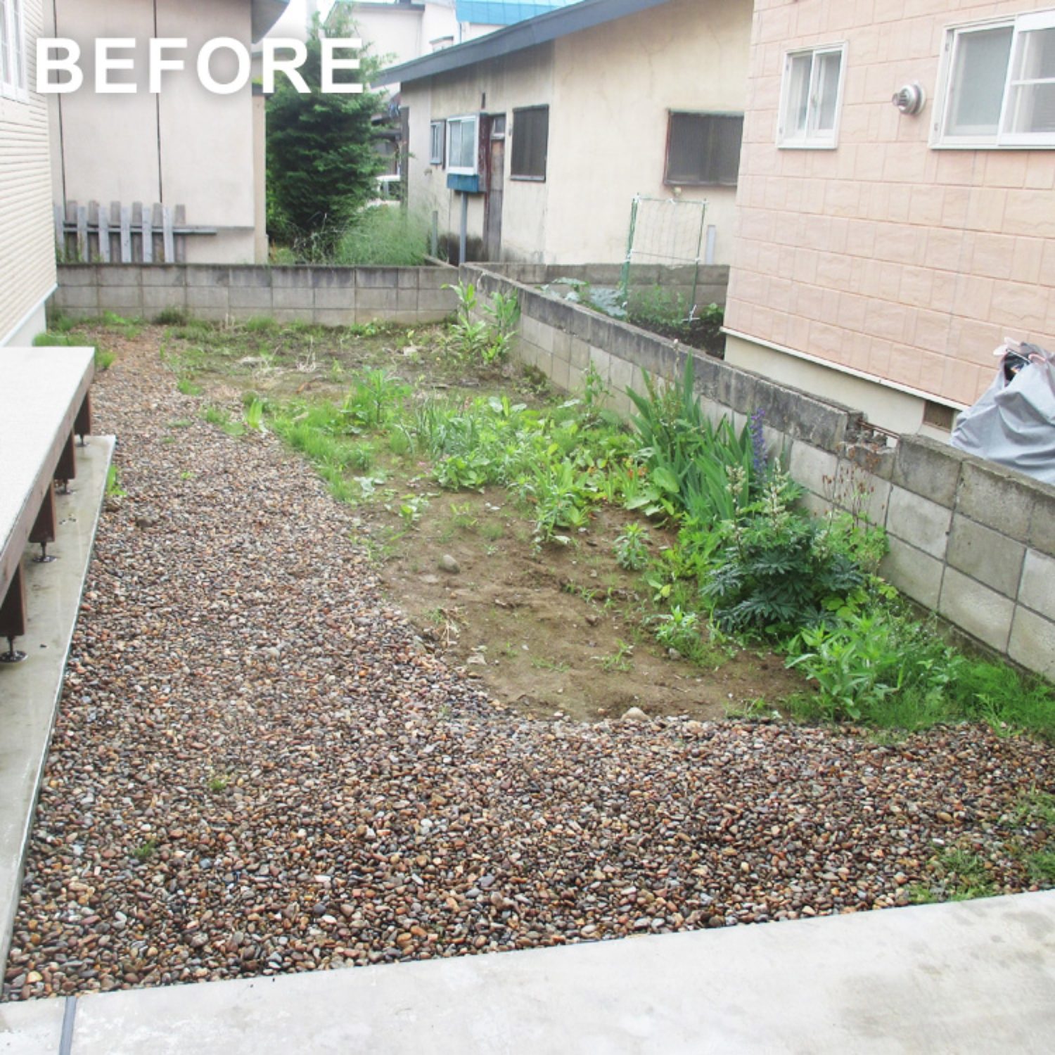 リビングにつながるデッキのあるお庭は、しっかりしたスペースがありながらも、雑草が生えやすくお手入れに悩まれていました。