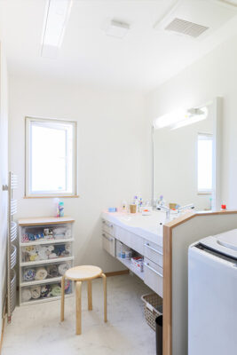 「さわやかな風の流れと、やさしい光が差し込む家」をコンセプトにした家です。さらに、ご要望の室内物干し部屋と洗面所を広く設計した、オール電化住宅で、快適な空間を実現しました。